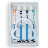 کیت بلیچینگ خانگی دنتیلایت با بهرهگیری از مواد اولیه مرغوب واردتی در فرمولاسیون منحصر به فرد خود، یک راهکار ایمن، اثربخش و مقرون به صرفه برای سفید کردن دندانها در خانه میباشد. این محصول با ارائه راهنمای استفاده در قالب ویدئو و بروشور راهنما انجام چهار نوبت بلیچینگتراپی را در منزل برای مصرفکننده ممکن میسازد. تعبیه اقلامی از جمله ژل فلوراید جهت اثربخشی بیشتر و ژل ضد حساسیت جهت جلوگیری از حساسیتهای احتمالی کیت بلیچینگ دنتیلایت را به ساختاری کامل برای ایجاد تجربهای موفق از بلیچینگتراپی، تبدیل کرده است.